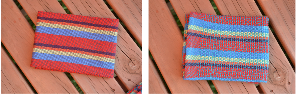 One of these is a simple plain weave, but the second uses a pickup stick to create a lovely waffle like texture. Using a pickup stick is a simple way to add “surface area” to your towel, which actually makes it more absorbent. Plus, it looks like you’ve done something super clever but it’s actually deceptively simple 😉